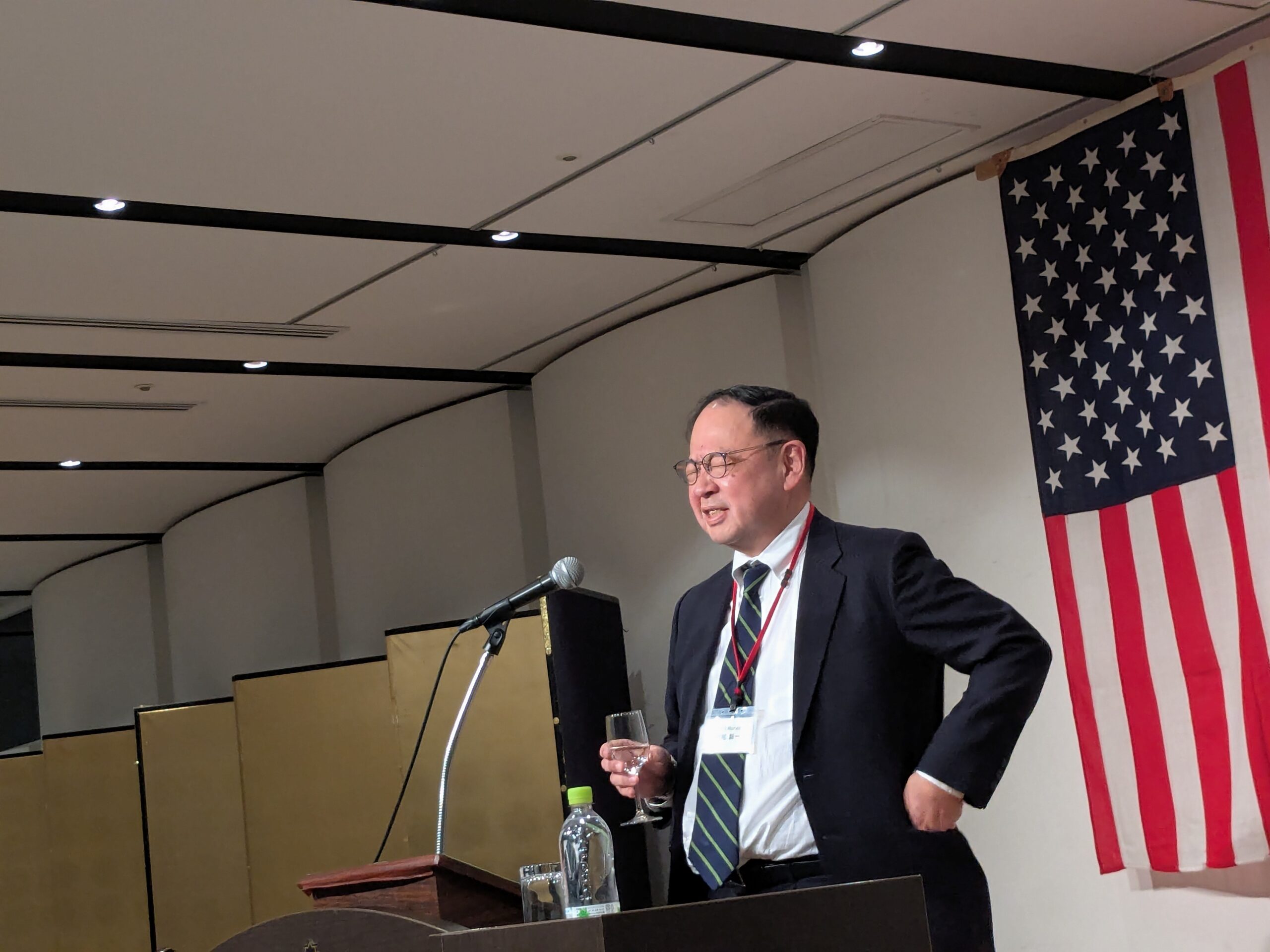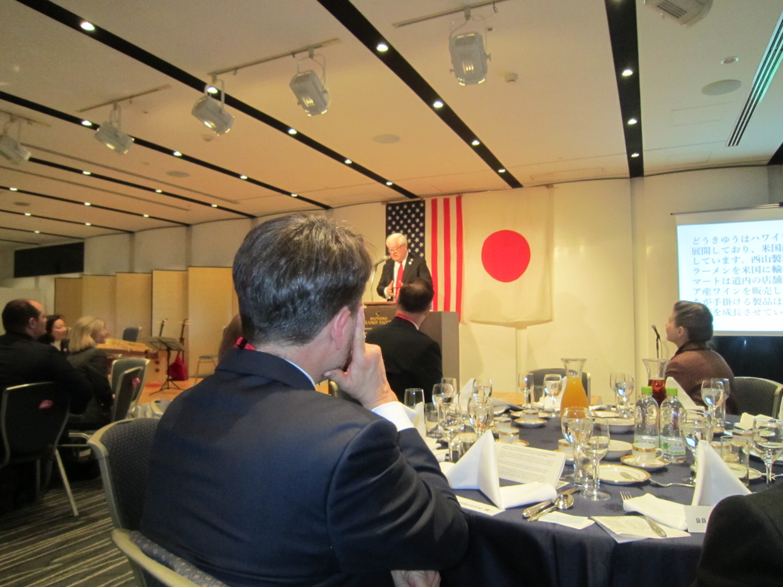 当日は、御手洗副会長が急用の入った岩田会長に代わり、日・英で歓迎の挨拶をされ、グラス大使のこれまでの日米の文化事業、経済分野、外交関係の分野での功績をたたえたスピーチを行った。さらに、日米関係の今後の発展と、1959年に締結し今日まで続く札幌とポートランド姉妹都市関係、昨年35周年記念式典を祝ったマサチューセッツ州と北海道の姉妹州関係、加えて2017年に締結されたハワイと北海道の友好州関係の絆の重要性についても言及された。