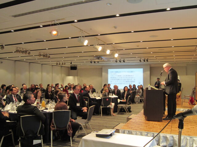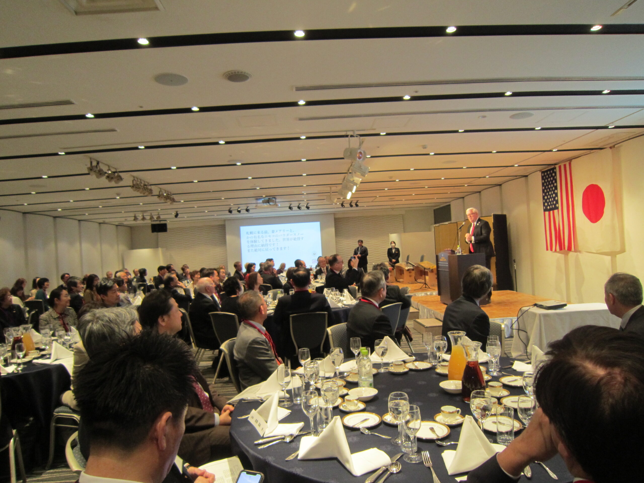 雪まつり期間の2月 5日(木)、駐日米国大使のジョージ・グラス大使とメアリー夫人が米高官ご一行を伴い、当協会の新年祝賀歓迎会に参加下さった。大使具夫妻は、札幌市の姉妹都市ポートランド・オレゴンにも在住されたことのある根っからのオレゴニアンである。(道産子のような存在)。そのため、100人以上が参加した今回の特別例会では、熱狂的な歓迎を受けた。