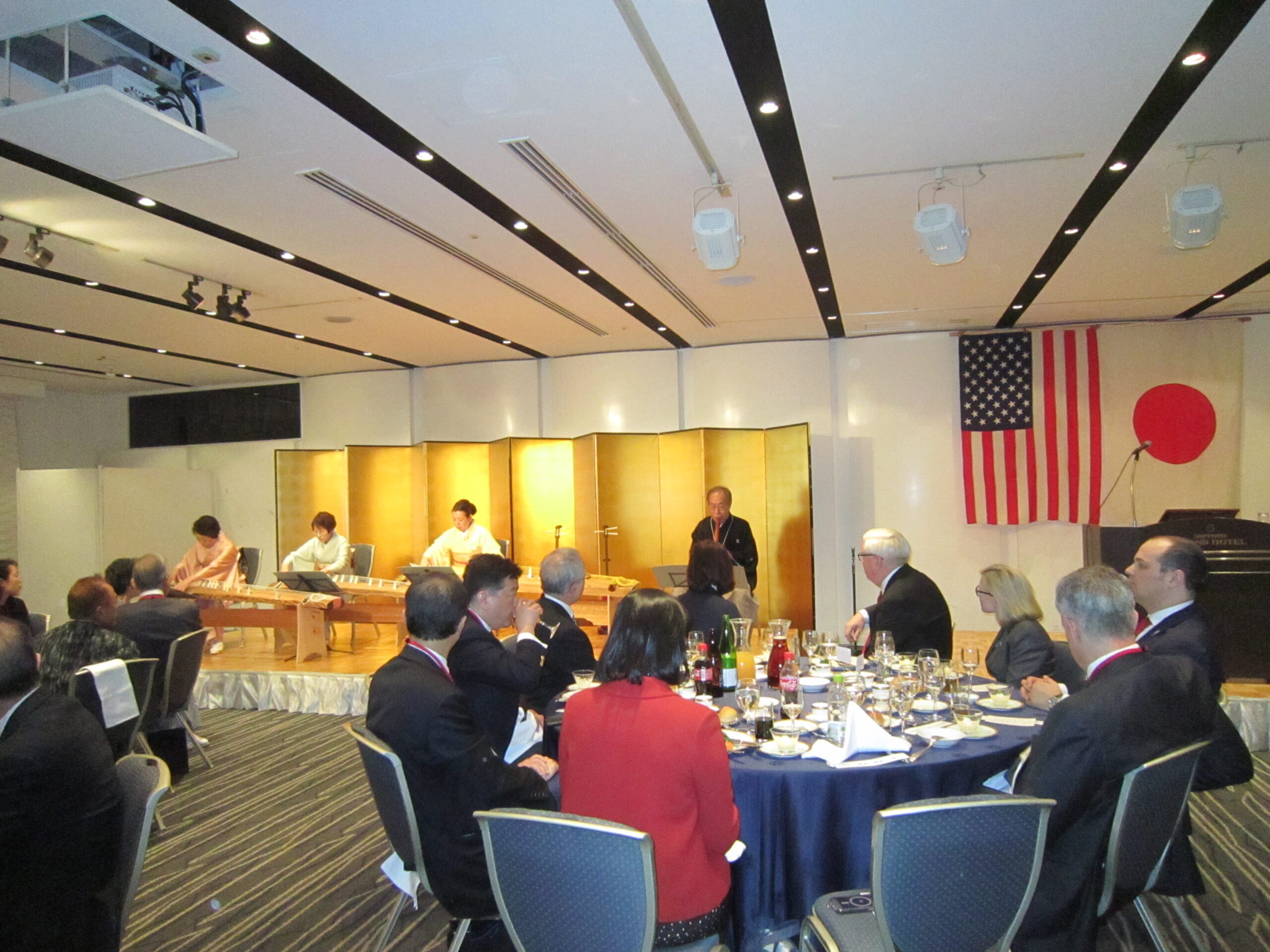 After Mr. Shinichi Murao—President of the Yomiuri Newspaper Hokkaido branch–proposed a toast for this special event, we held luncheon in honor of Ambassador Glass and his wife. “Kinyuukai(Japanese harp friends’ association)” led by Takashi Baba and his wife entertained the Ambassador, U.S. delegation and the entire audience. The entire audience was lured by their traditional Hokkaido music performance.